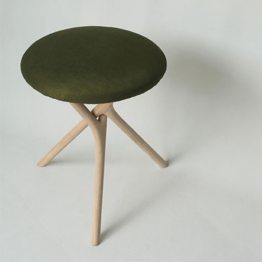 Forest is a wooden stool that reminds us of those quiet mornings where we weave through the woods shrouded in mist and hear the crunching of leaves beneath our feet. The organically sculpted Y-junction of the legs is inspired by the tree branch. Two sets of Y-junctions interlock to form a stable tripod structure, reminiscent of twig structures we used to construct as children.